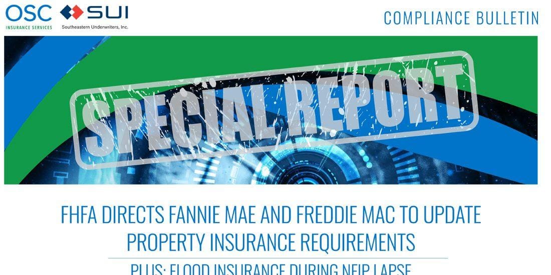 OSC Compliance Insight Bulletin: FHFA Directs Fannie Mae and Freddie Mac to Update Property Insurance Requirements, Plus: Flood Insurance During NFIP Lapse